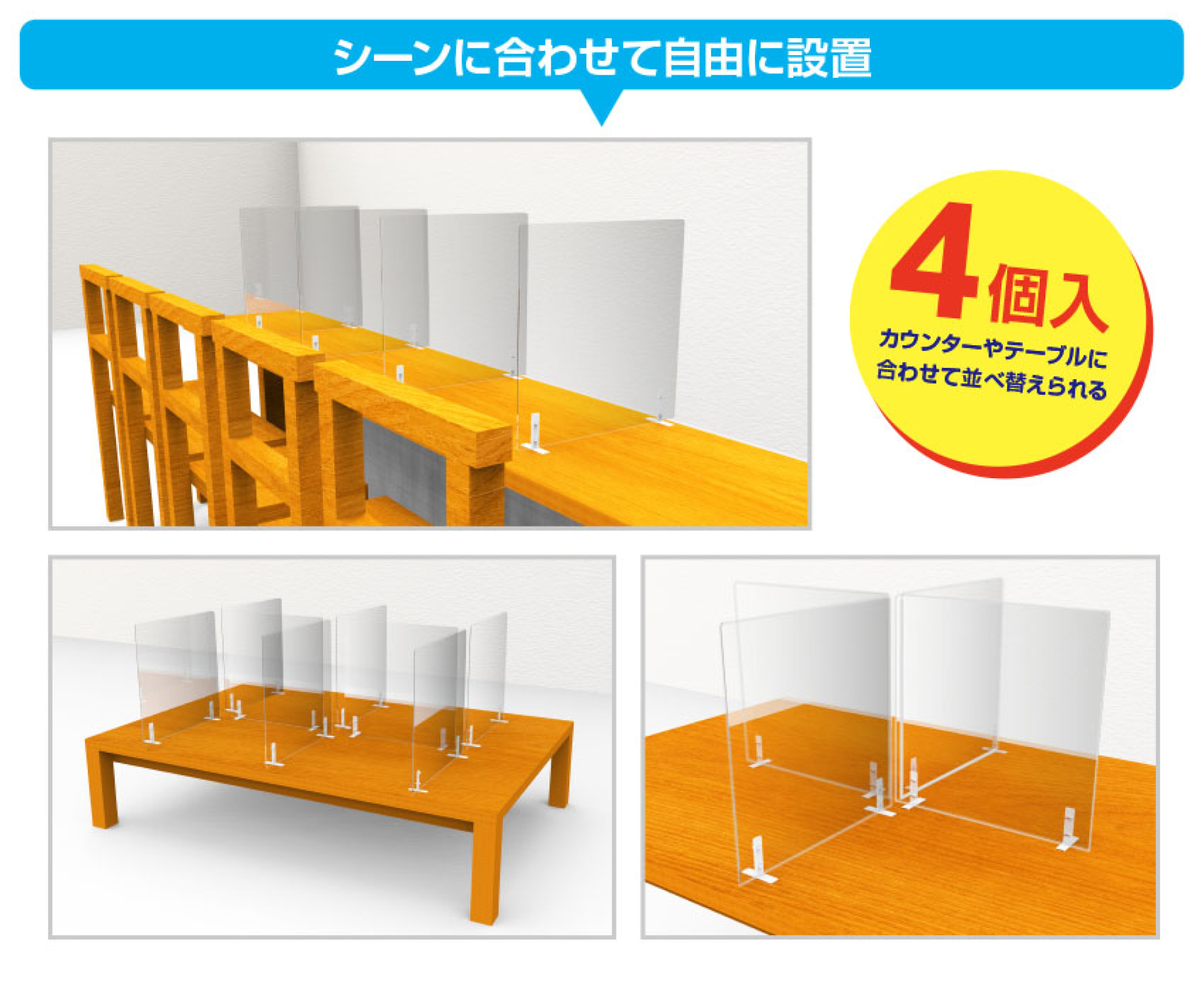 テーブルなどに、複数で利用してパーソナルスペースの確保にも